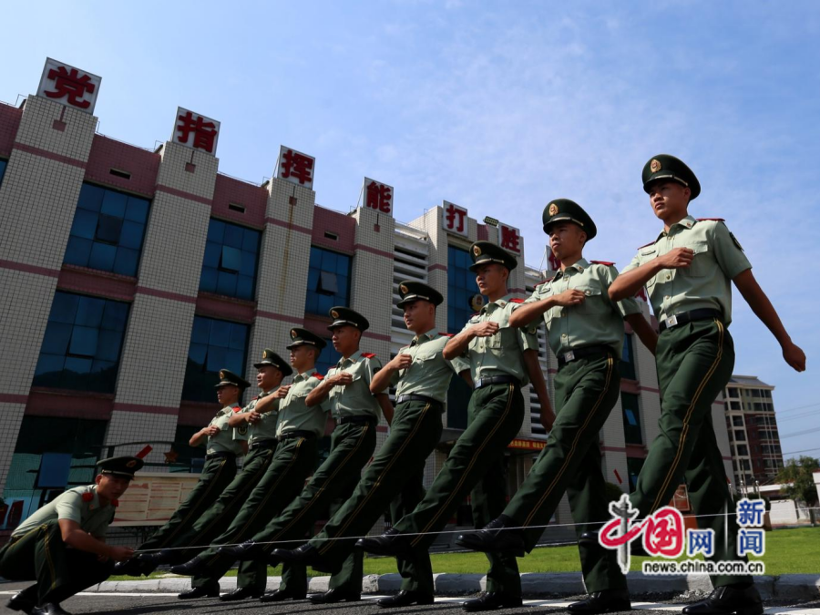 2020年7月,武警炎陵中队以绳为尺严抠正步细节。