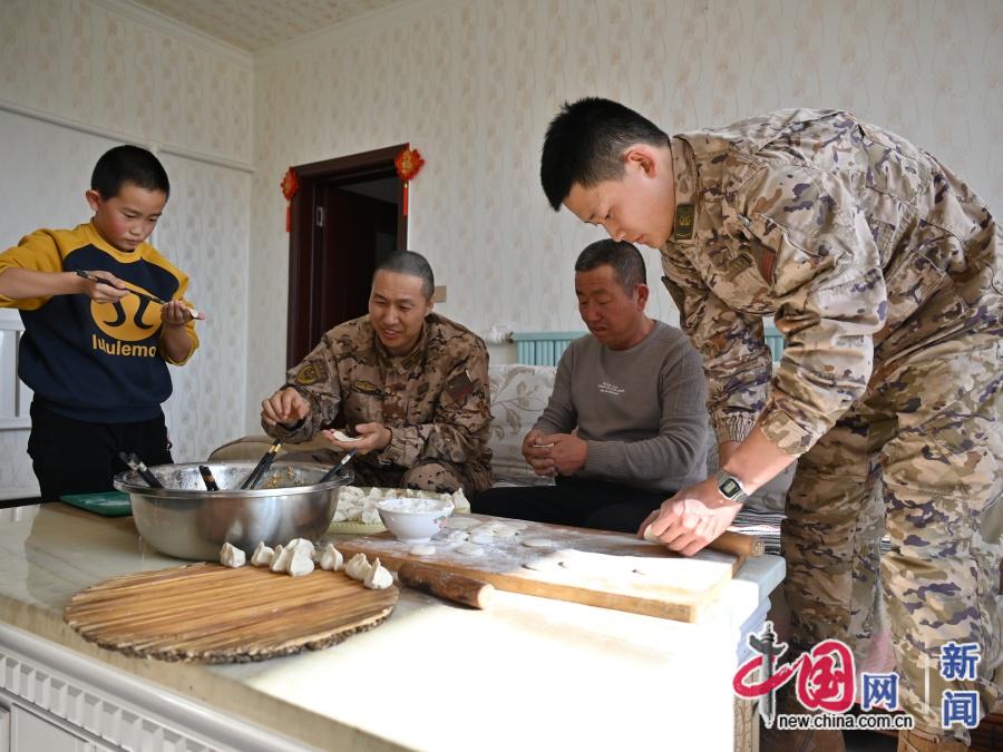 2025年1月,春节前夕,布和图木尔深入乌拉特中旗德岭山镇看望慰问帮扶的困难学生,并与小学生及家人一起包饺子。