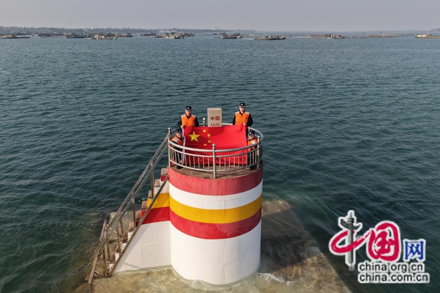 东兴第二工作站官兵在1377号界碑巡逻。舒玉筱摄