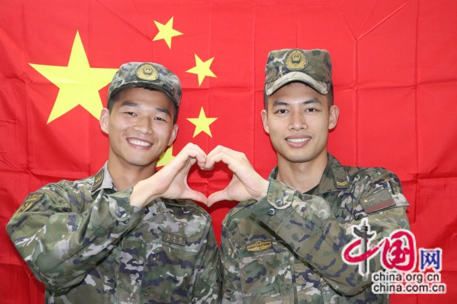 谯禾林为祖国庆生(左侧为谯禾林)。苏杰 摄