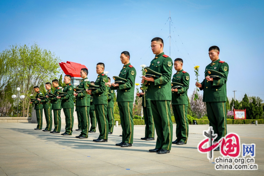 武警天津总队组织官兵赴驻地烈士陵园开展“清明祭英烈”主题活动。 王良 摄