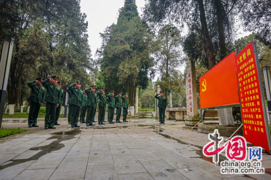 武警安顺支队官兵在烈士陵园重温入党誓词。吕康 摄