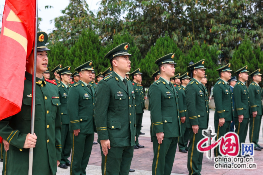 武警宁德支队官兵在烈士陵园奏唱国歌。周以涛 摄